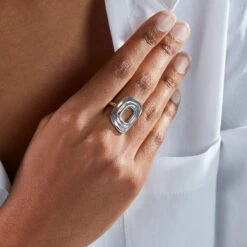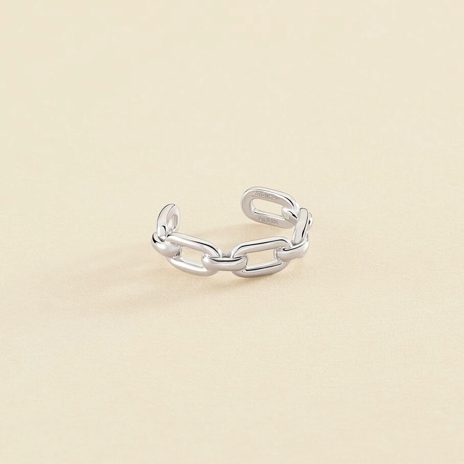 Bague ouverte en argent véritable formée d’une maille rectangulaire rigide. PM: 48/50 – MM: 52/54 – GM: 56/58