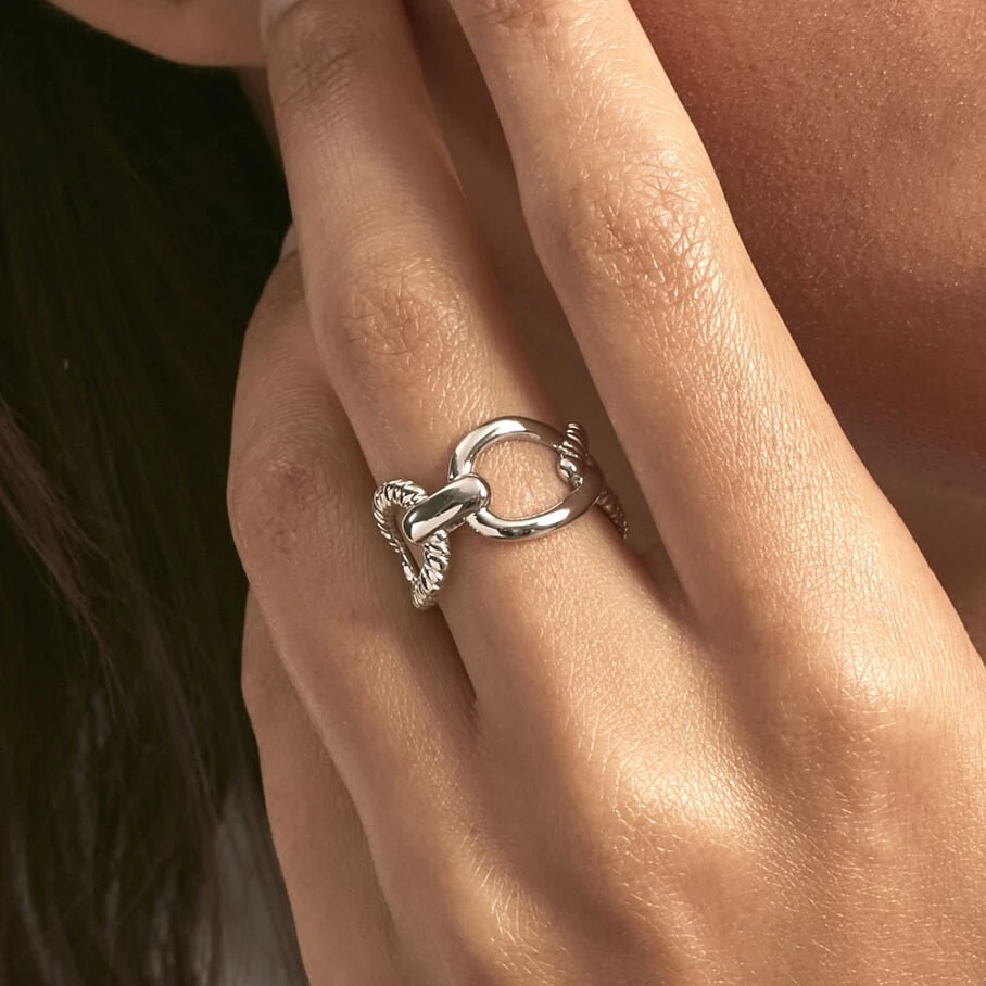 Bague, en argent véritable, formée par un entrelac de gouttes lisses et torsadées