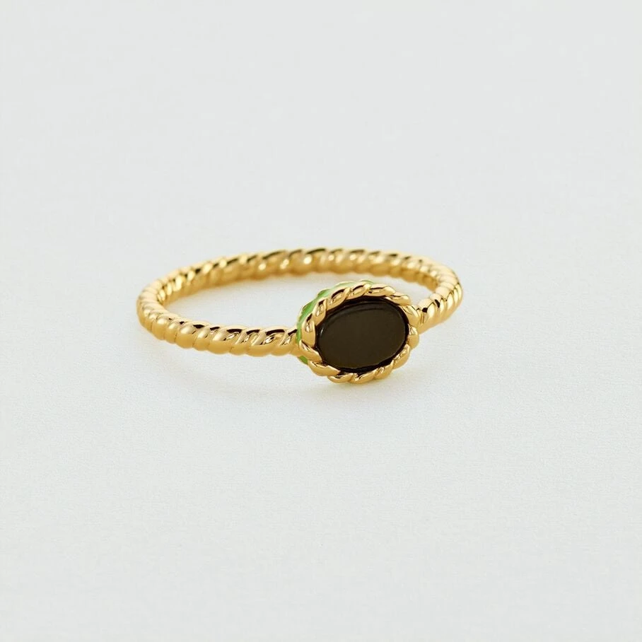Bague, en argent véritable 925/1000 dorées 750/1000, sertie d’une pierre fine. Un liseré d’émail, sur la tranche du serti, apporte une vraie touche d’originalité! Un modèle classique revisité pour affirmer style et personnalité!