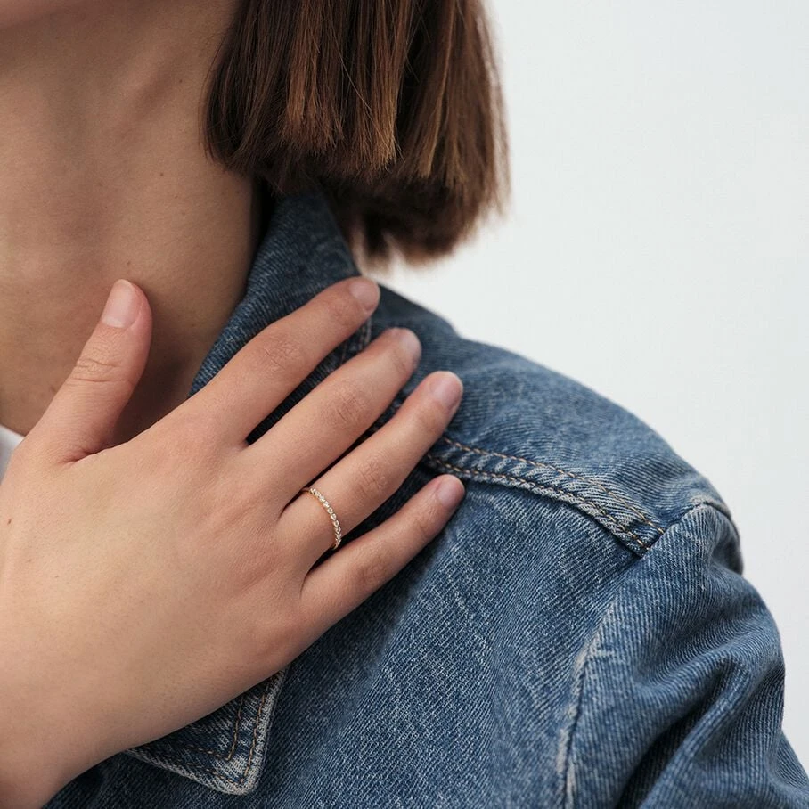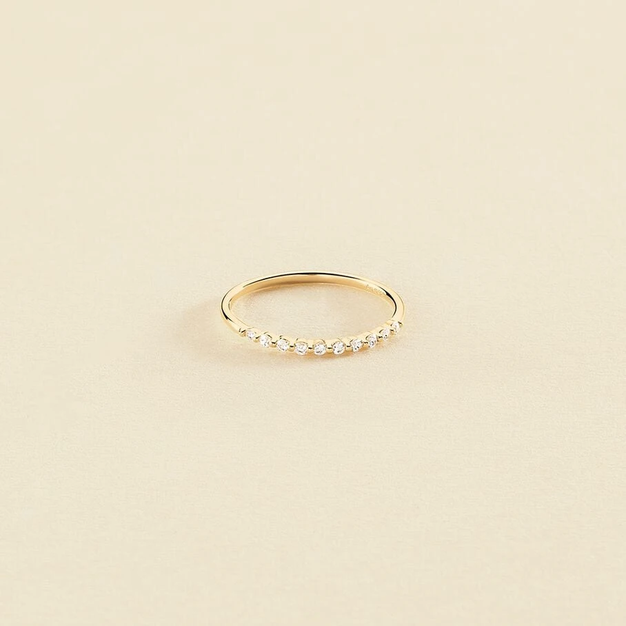 Bague, en argent plaqué or, sur laquelle ont été sertis clos une série d’oxydes de zirconium
