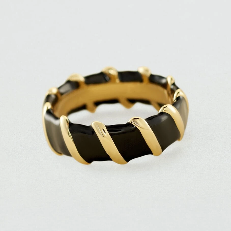 Bague, en laiton doré 750/1000, effet torsadé en émail