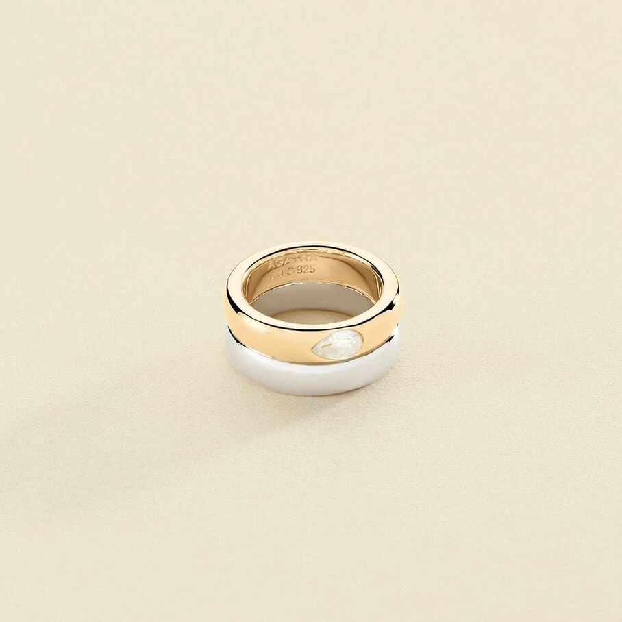 Deux joncs, en argent véritable et argent véritable doré 750/1000, dont l’un avec un oxyde de zirconium serti dans le corps de bague