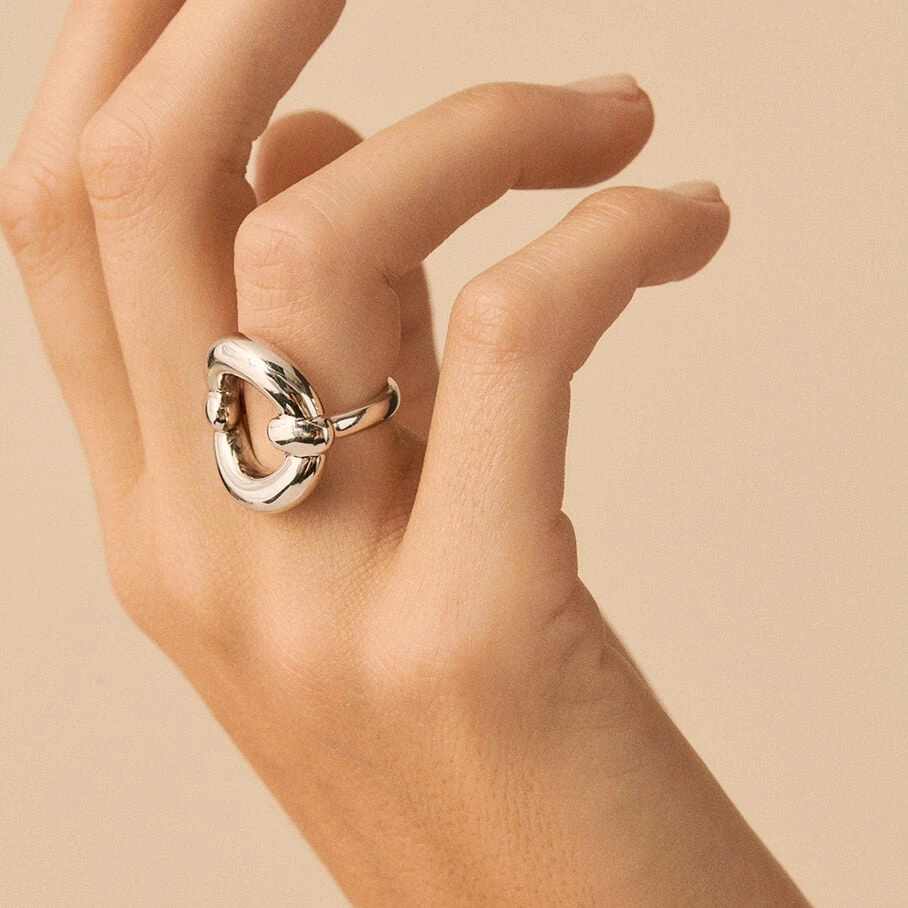 Bague large en argent véritable avec ornée d’un anneau évidé