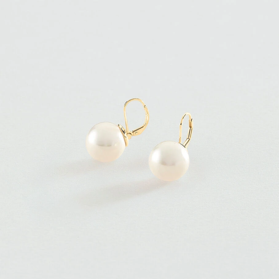 Boucles d’oreilles dormeuses en argent véritable dorées 750/1000, ornées de perles de verre de 14 mm de diamètre