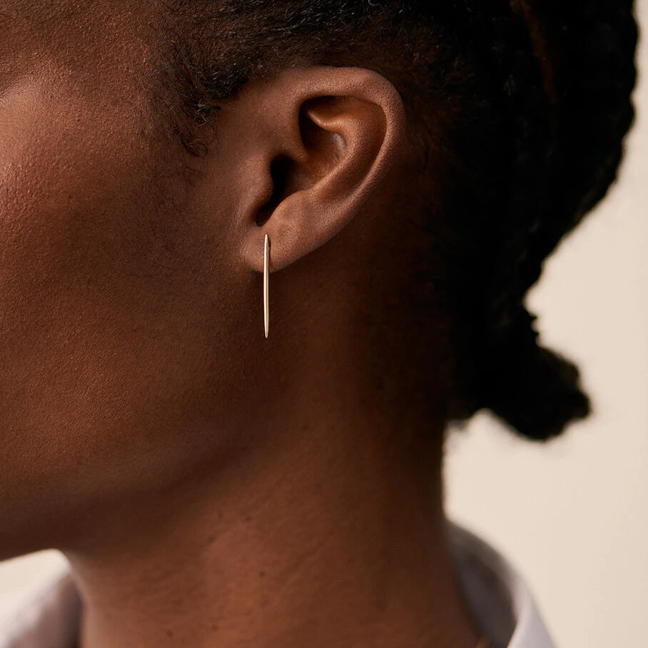 Boucles d’oreilles linéaires, en argent véritable 925/1000 et dorées 750/1000, au motif rayon de soleil.