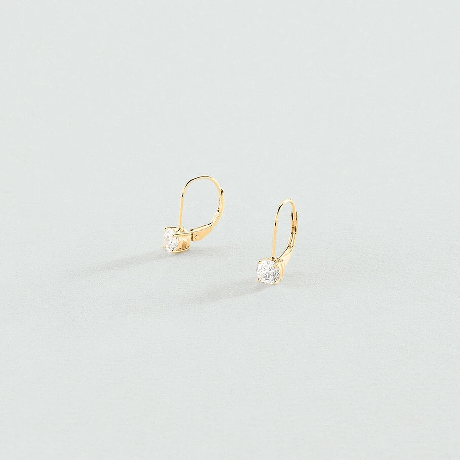 Boucles d’oreilles dormeuses, en argent véritable doré à l’or fin, avec un oxyde de zirconium griffé de 5mm de diamètre