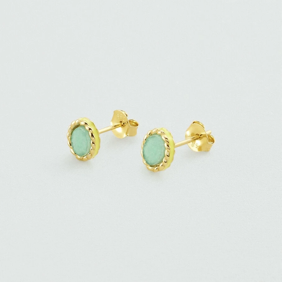Boucles d’oreilles puces, en argent véritable 925/1000 dorées 750/1000, sertie d’une pierre fine. Un liseré d’émail, sur la tranche de la boucle, apporte une vraie touche d’originalité! Un modèle classique revisité pour affirmer style et personnalité!