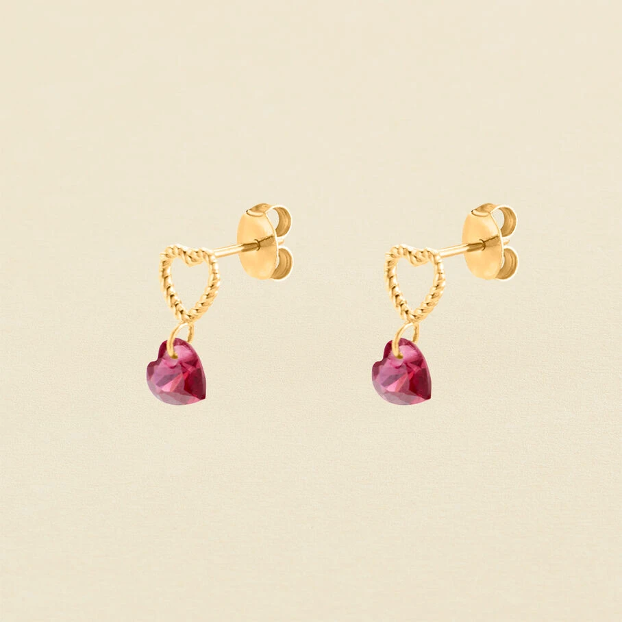 Boucles d’oreilles puces, en argent véritable doré 750/1000, dont le top est un cœur fait d’un fil torsadé auquel est suspendu un oxyde de zirconium en forme de coeur