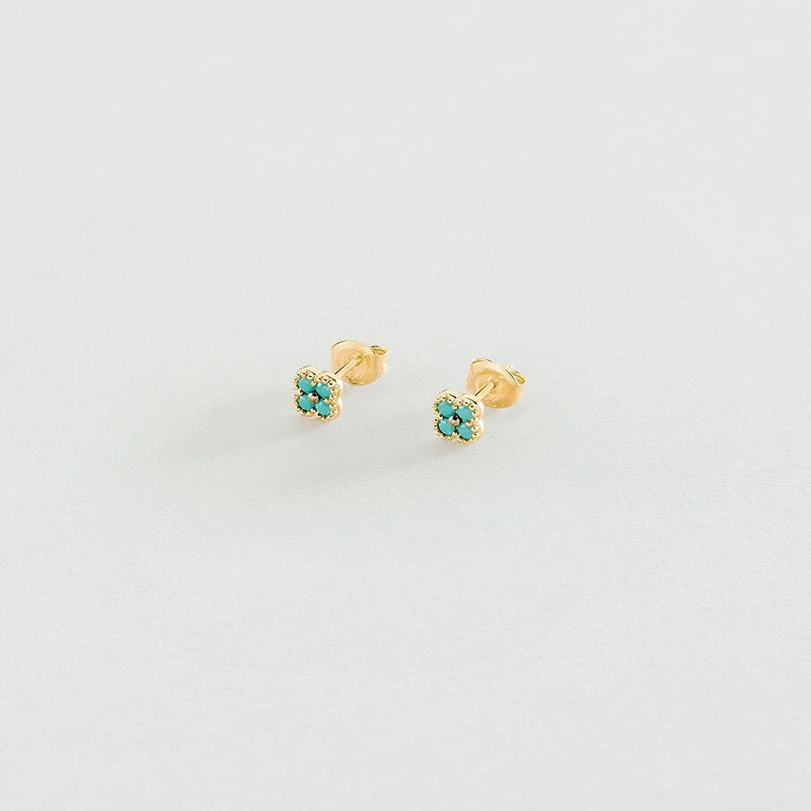 Boucles d’oreilles puces, en argent véritable finement doré 750/1000, en forme de fleur; dont les pétales sont pavés d’oxyde de zirconium et le pourtour réalisé avec un fin graineti