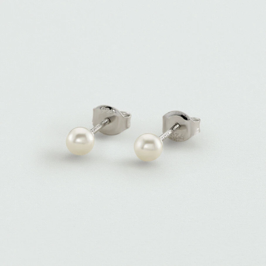 Boucles d’oreilles puces en argent véritable ornée de perles de verre de 4 mm de diamètre