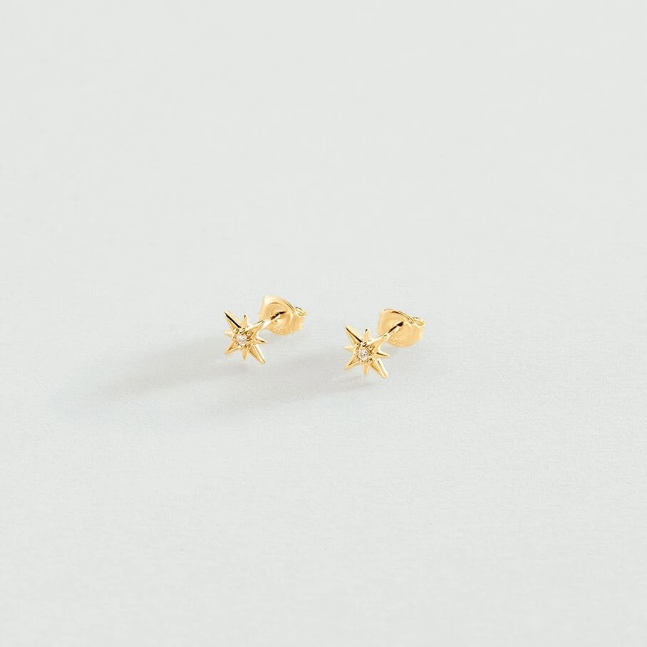 Boucles d’oreilles étoiles en argent véritable dorées 750/1000 avec un oxyde de zirconium
