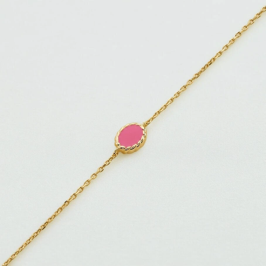 Bracelet maille, en argent véritable 925/1000 et doré 750/1000, orné d’un pendentif monté d’une pierre fine d’un côté et émaillé de l’aute côté. La torsade, véritable signature de la marque, est apportée en touche notamment sur la bordure du pendentif! Un bracelet au double porté pour accorder à son humeur et à ses tenues!