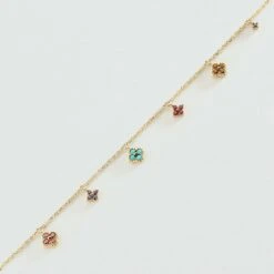 Bracelet chaine, en argent véritable doré 750/1000, avec des fleurs d’oxydes de zirconium en pampille et un fin graineti sur le pourtour