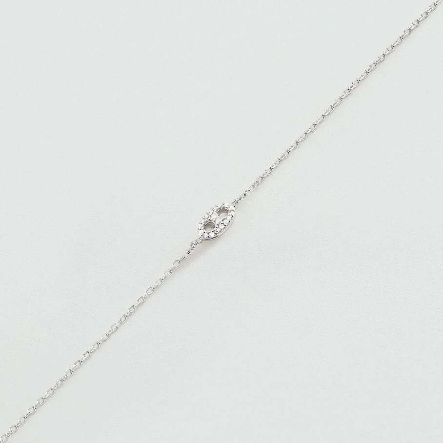 Bracelet, en argent véritable, avec un grain de café pavé monté sur une fine chaine maille forçat