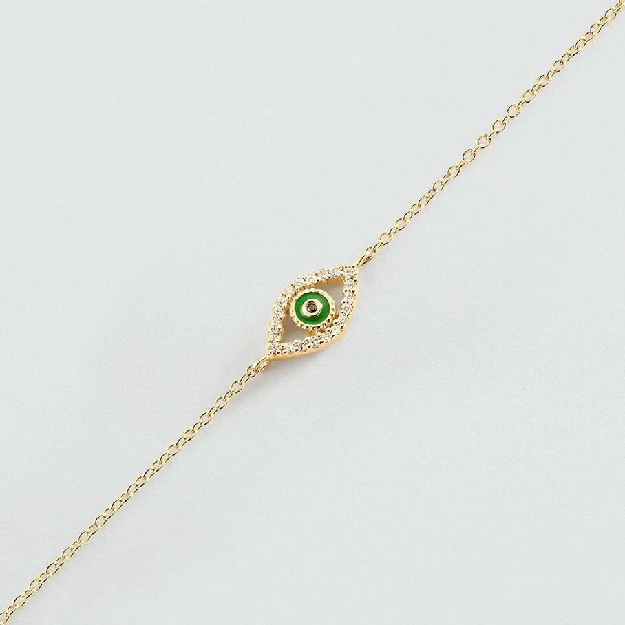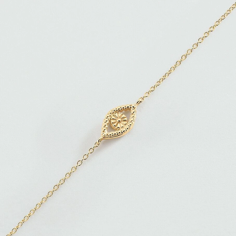 Bracelet, en argent véritable 925/1000 et doré 750/1000, dont la chaine est ornée d’un petit œil turc. L’iris émaillé et le contour de l’œil serti d’oxydes de zirconium apportent un vrai raffinement et éclat au produit!