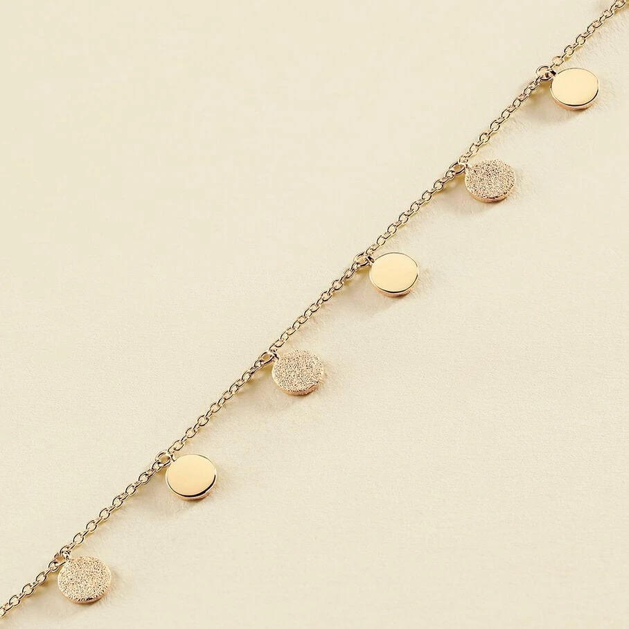 Bracelet, en laiton doré à l’or fin, fait de pastilles en pampille avec des finitions alternant entre un effet sablé brillant et un effet lisse