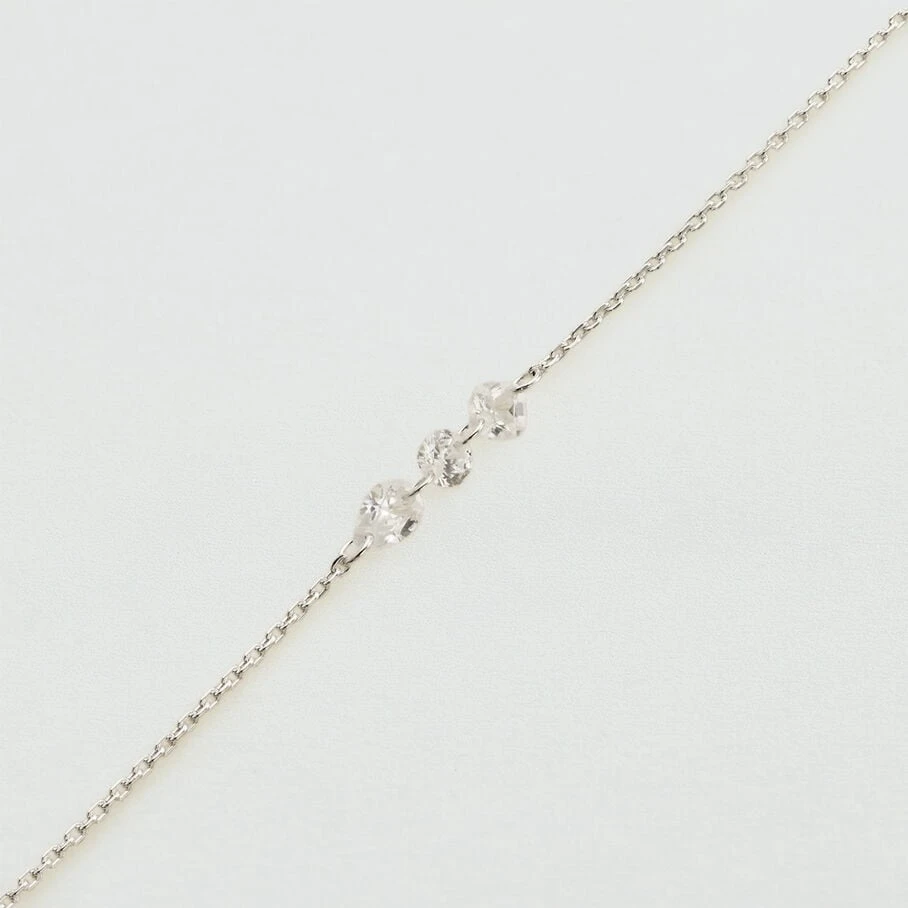 Bracelet fin, en argent véritable, avec une trilogie d’oxydes de zirconium percés en forme de poire, de rond et coussin