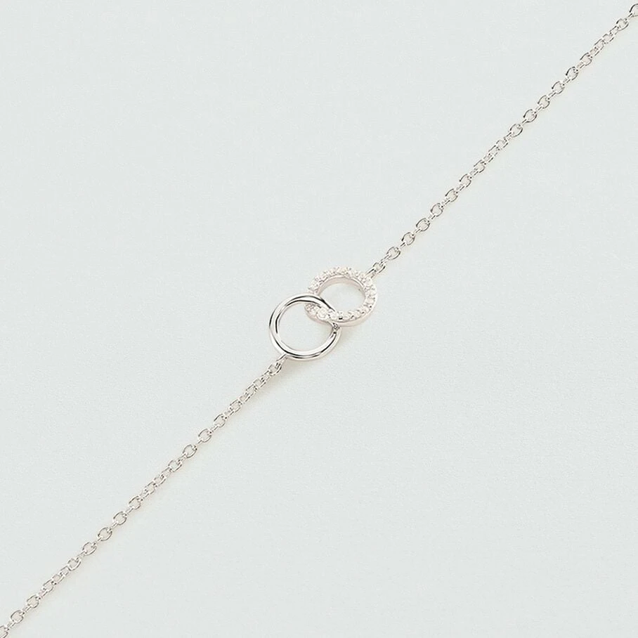 Bracelet souple en argent véritable orné de deux anneaux entrelacés dont un pavé d’oxydes de zirconium