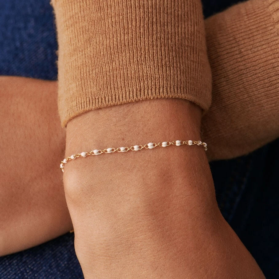 Bracelet, en laiton doré 750/1000, perles d’émail sur toute la longueur