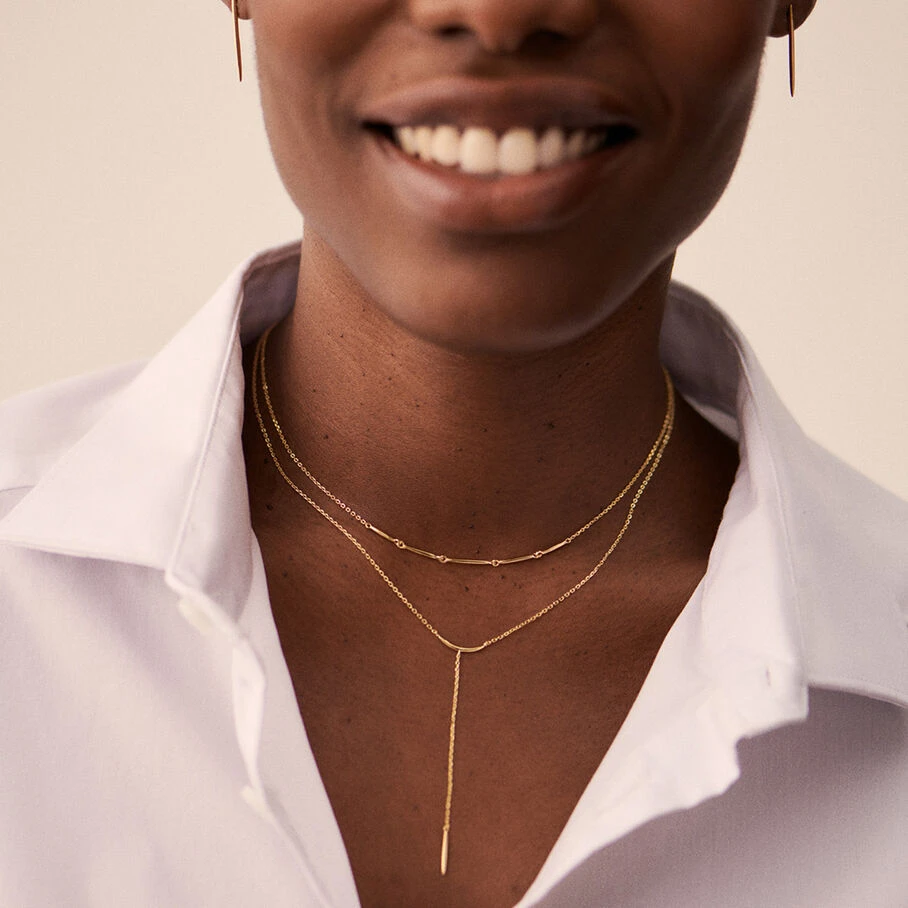 Collier Y sur chaine, en argent véritable 925/1000 et doré 750/1000, au pendentif en forme de rayon de soleil.