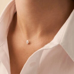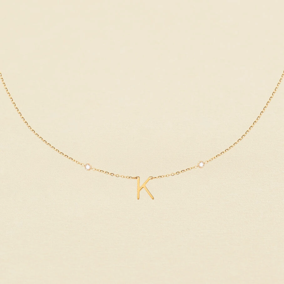 Collier fin composé de la lettre K et de deux oxydes de zirconium. Longueur: 42cm