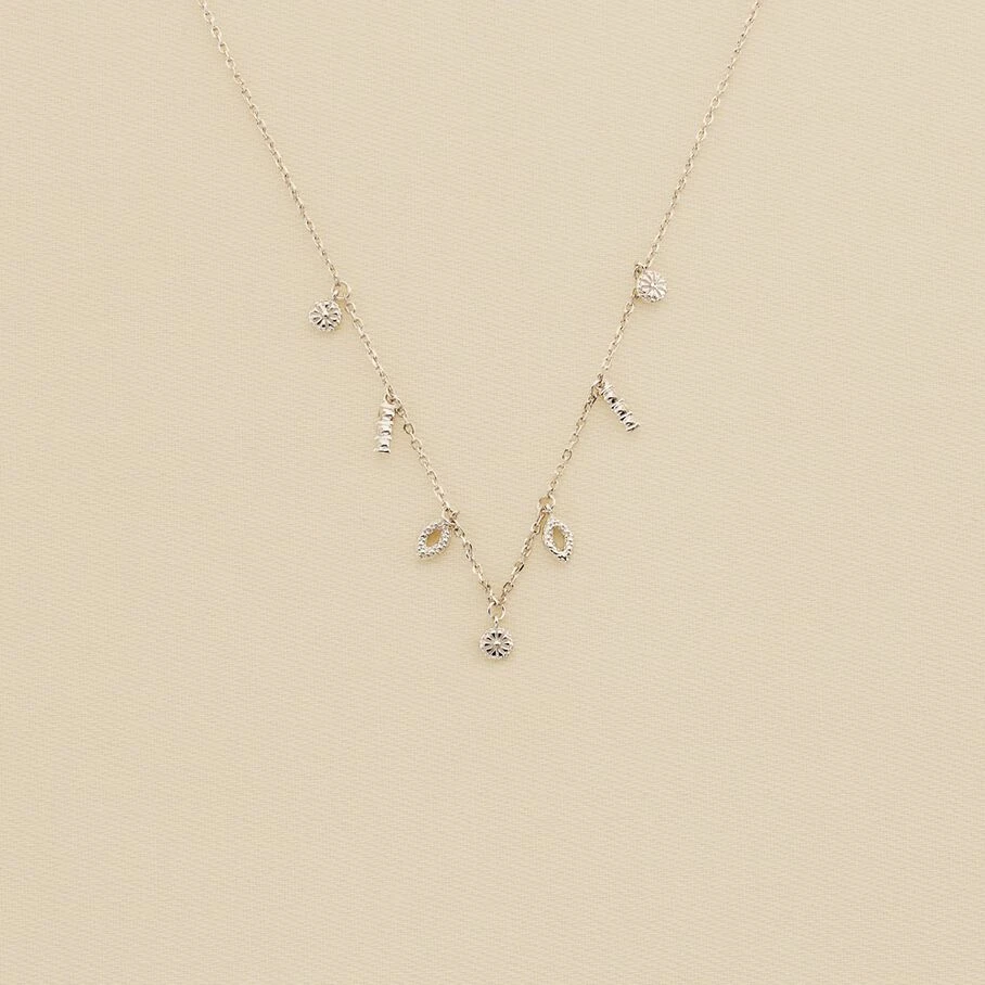 Collier chaine maille forçat, en argent véritable 925/1000, orné de différentes pampilles: Œils turcs, oxydes de zirconium…