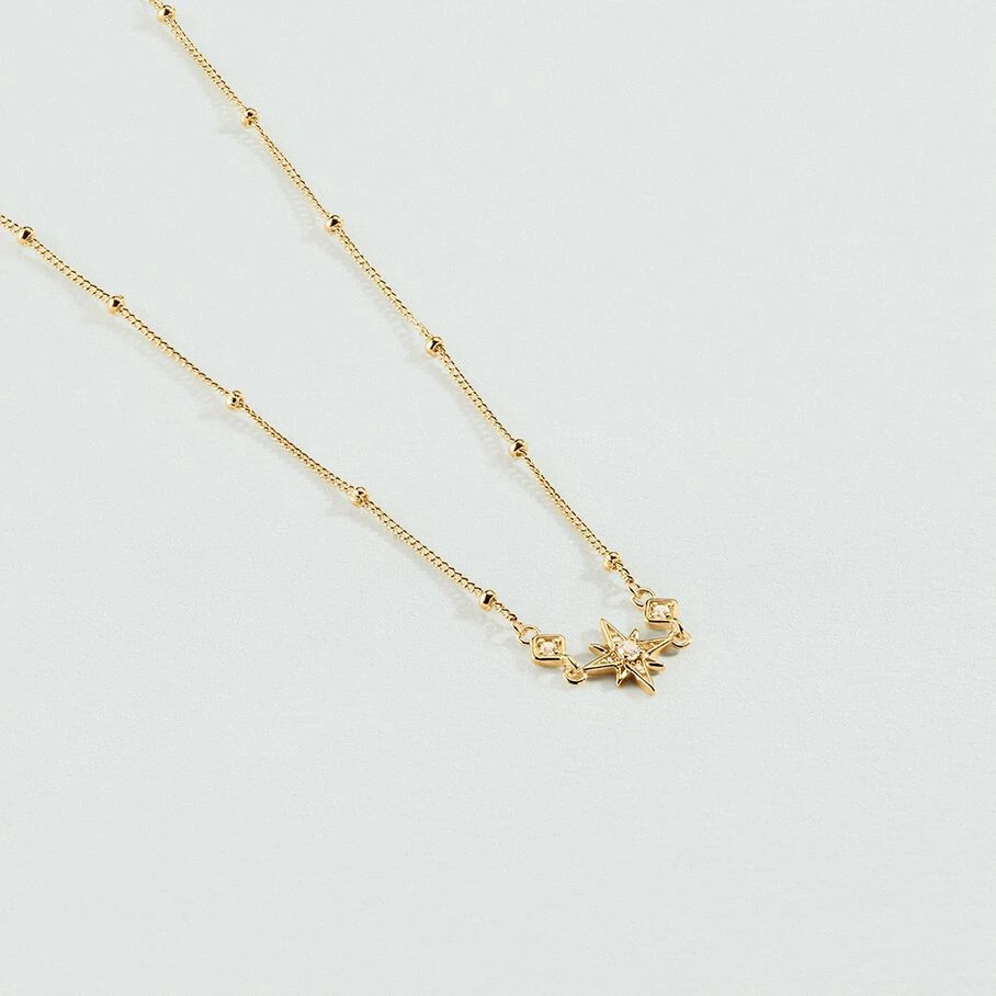 Collier mi-long, en argent véritable doré 750/1000, avec une étoile en pendentif serti d’un oxyde de zirconium sur une fine chaine