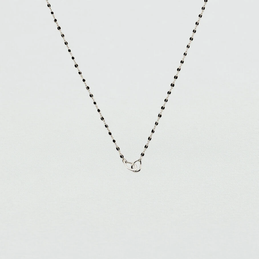 Collier court, laiton, perles d’émail sur chaîne et 2 anneaux gouttes entrelaçés
