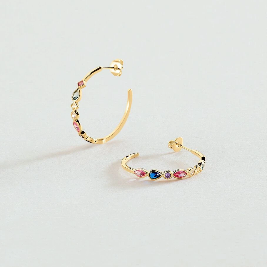 Créoles en laiton doré 750/1000 avec des oxydes de zirconium de différentes formes