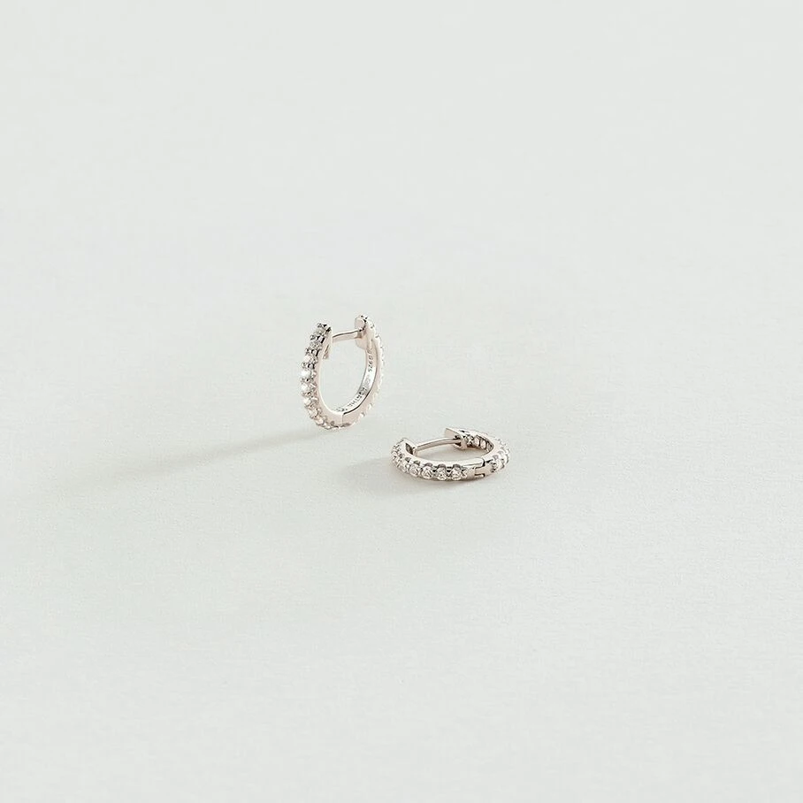 Boucles d’oreilles mini-créoles en argent véritable pavées d’oxydes de zirconium