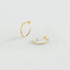 Créoles de 20mm de diamètre, en argent 925/1000 doré 750/1000, sur laquelle ont été sertis clos une série d’oxydes de zirconium