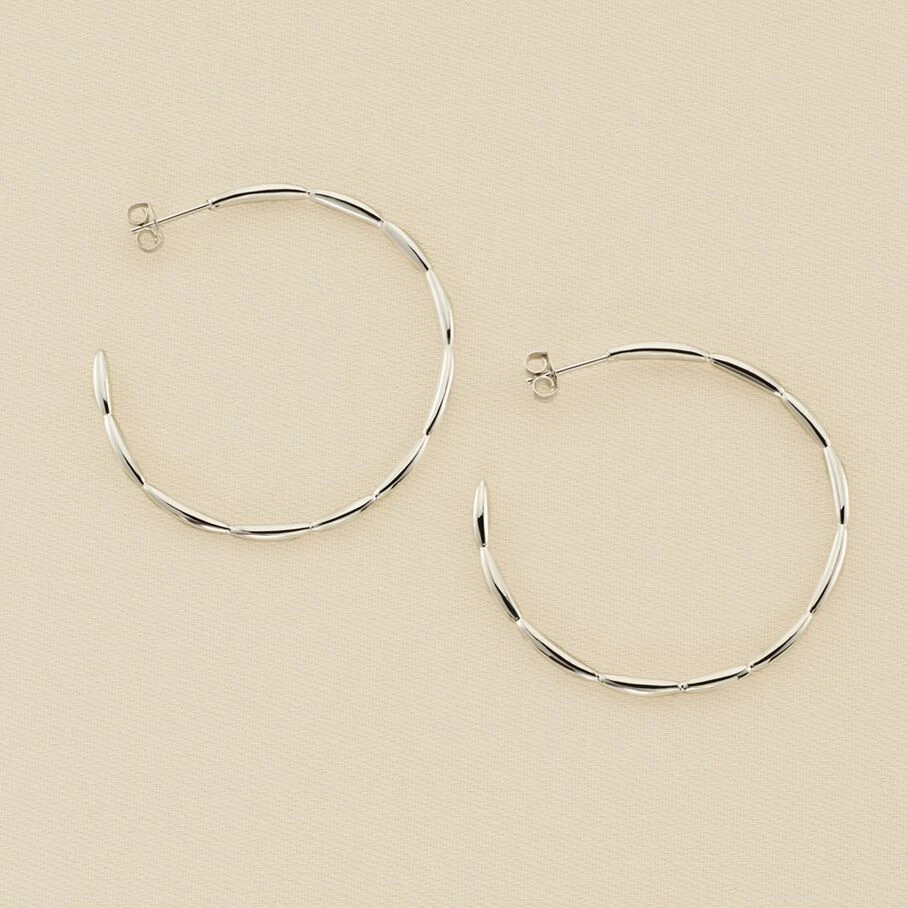 Créoles de 40mm de diamètre, en argent véritable 925/1000 au motif rayon de soleil.