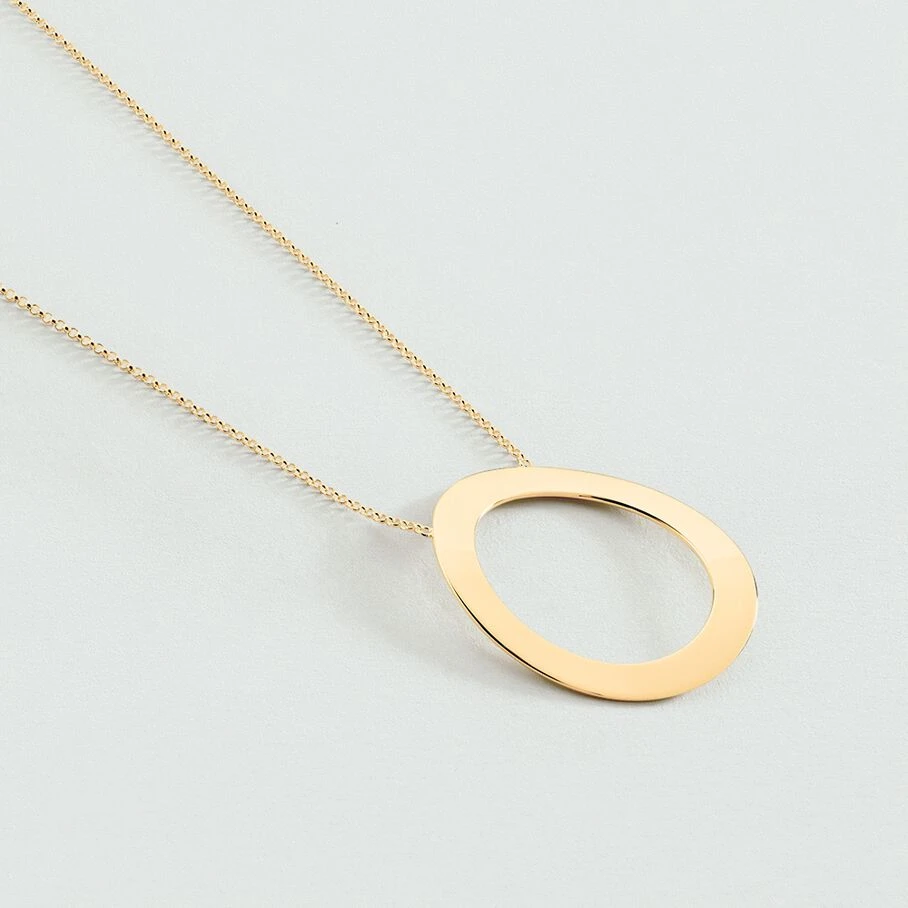 Sautoir en argent véritable doré 750/1000 orné d’un anneau plat évidé