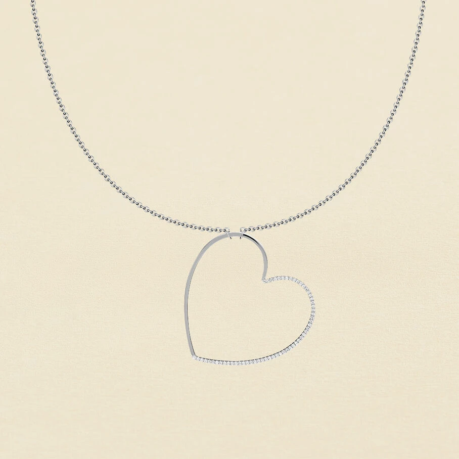 Sautoir en argent véritable orné d’un cœur évidé pavé d’oxydes de zirconium